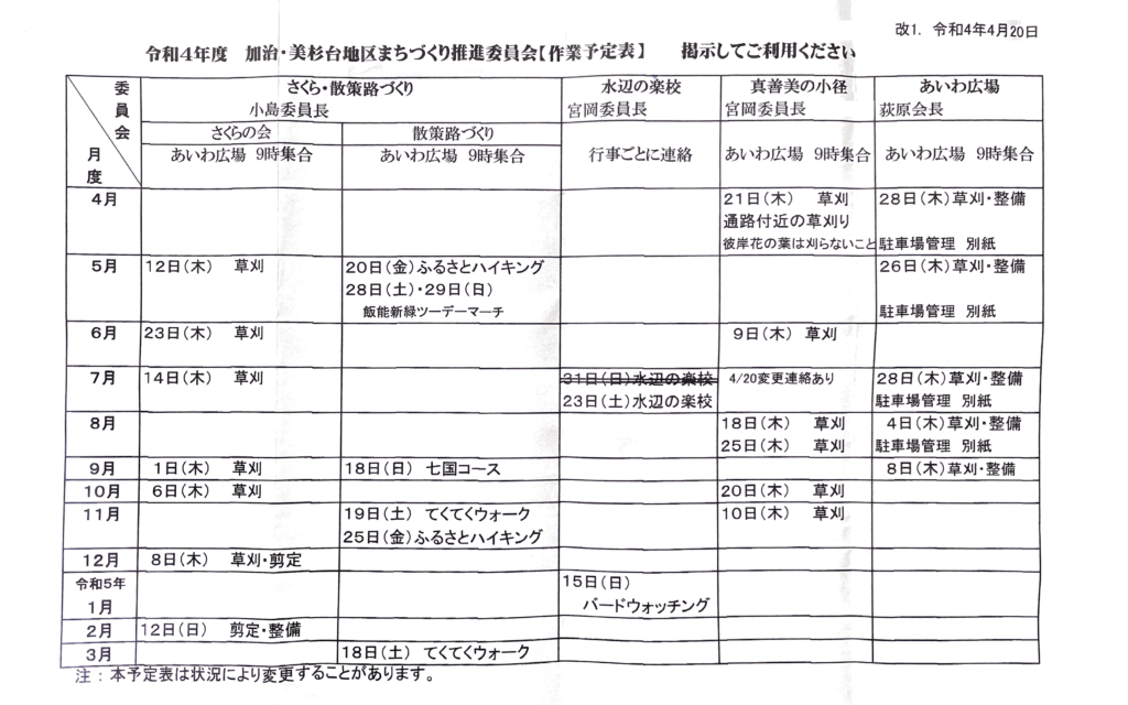 2022年4月22日、令和4年度の作業予定表を更新いたしました。